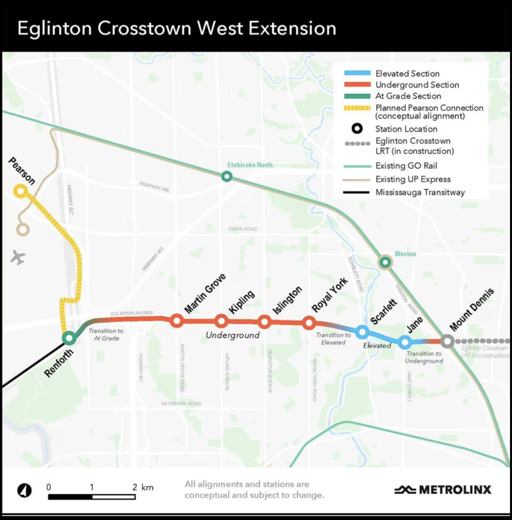 Major construction is also expected to begin soon on the 0.93-mile (1.5-kilometer) elevated section of the line that will run from west of Scarlett Road to the tunnel portal near Jane Street.