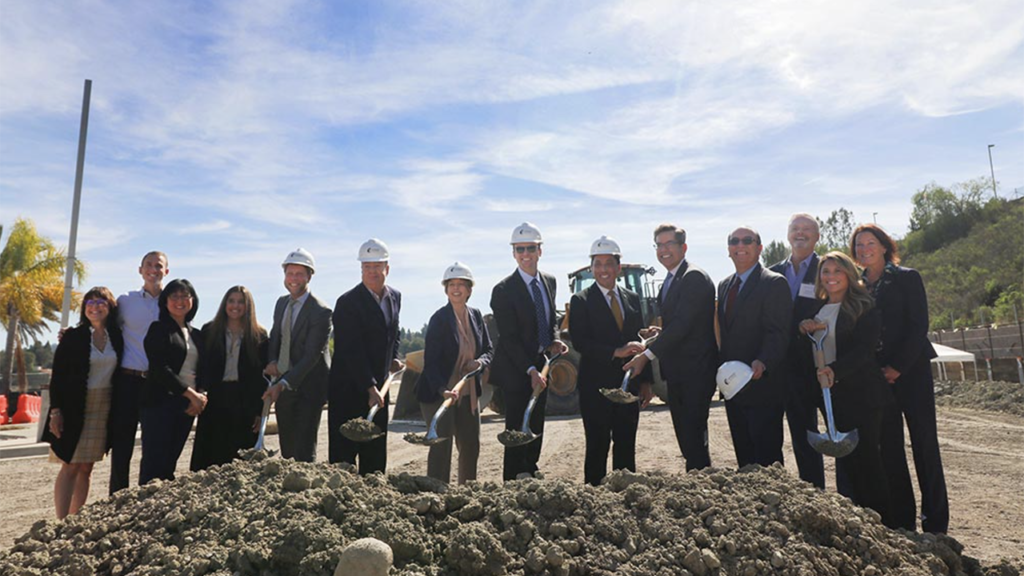 San Diego MTS on Feb. 15 celebrated the beginning of construction on SkyLINE Apartments at the Rancho Bernardo Transit Station. Also attending the groundbreaking ceremony were officials from Affirmed Housing, a provider of affordable and supportive housing throughout California, and regional housing leaders. The new seven-story mixed-use, transit-oriented, affordable housing development in San Diego’s Rancho Bernardo neighborhood will include 100 apartment homes and roughly 14,000 square feet of commercial space that will be Affirmed Housing’s new company headquarters.