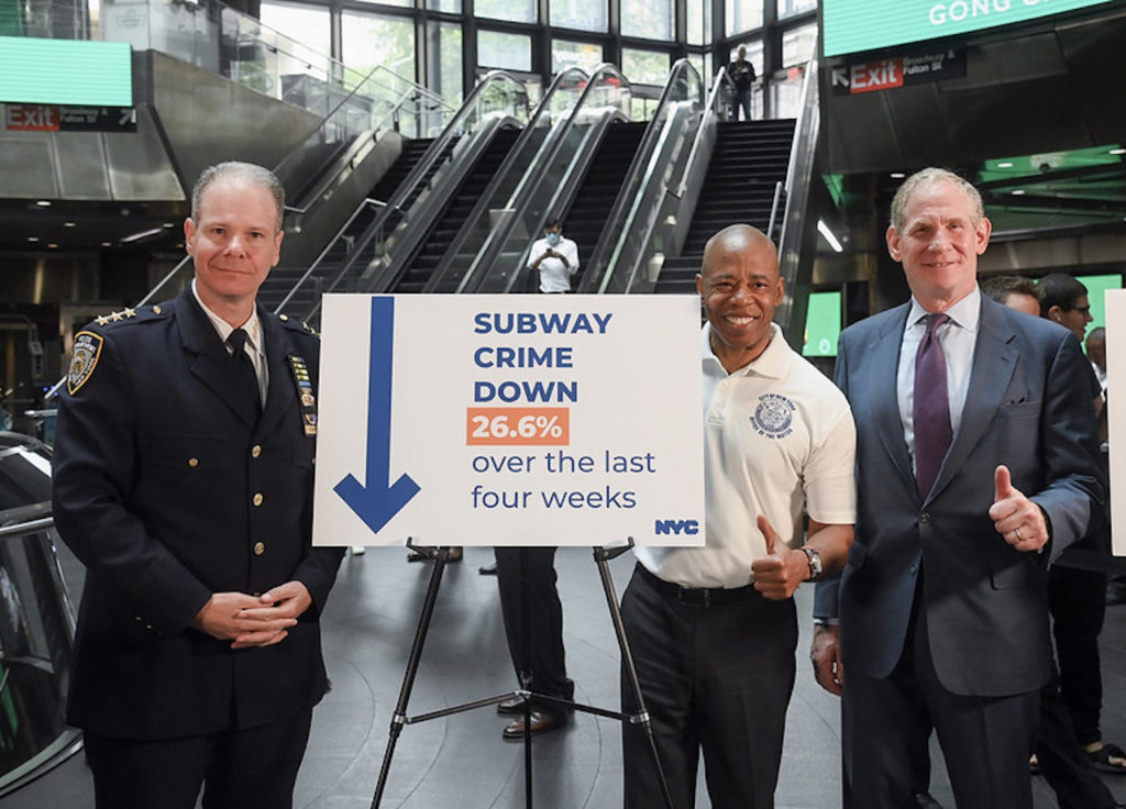 The New York MTA on July 17, along with New York City Mayor Eric Adams, New York Governor Kathy Hochul, New York City Police Department (NYPD) Commissioner Edward A. Caban, and MTA Chair and CEO Janno Lieber, celebrated new data released by the NYPD, showing new milestones in the city and the MTA’s efforts to make New York City’s subways even safer.