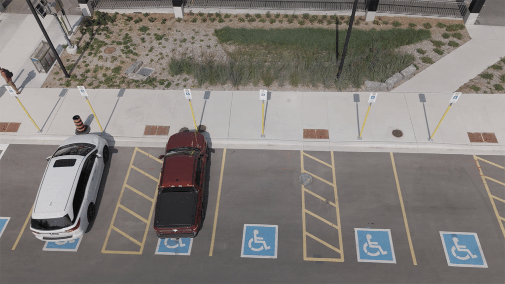 - Barrier-free accessibility parking spaces in the south parking lot.