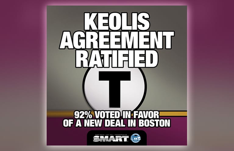 By an “overwhelming” majority of 92%, SMART-TD-represented conductors and assistant conductors have ratified their tentative agreement with Keolis Commuter Services, which employs 450 SMART-TD members on behalf of the Massachusetts Bay Transportation Authority (MBTA), the union recently announced.