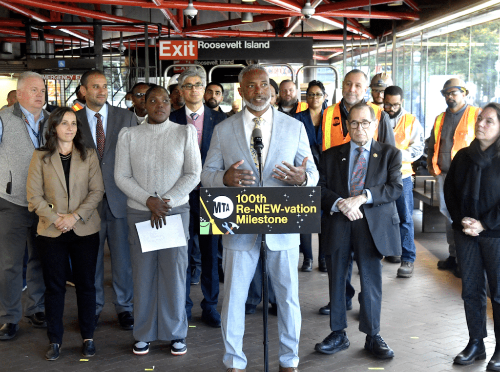 The New York MTA on Oct. 16 announced the 100th Re-NEW-vation project completed at Roosevelt Island ​F station, marking a major milestone in the program which first began in 2022.