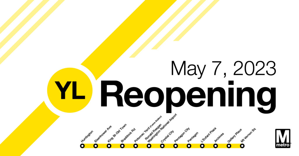 As of Sunday, May 7, WMATA’s Yellow Line service has resumed across the Potamic River, following an eight-month, on-time and anticipated to be under budget rehabilitation project to repair the deteriorating 1970s tunnel and bridge.