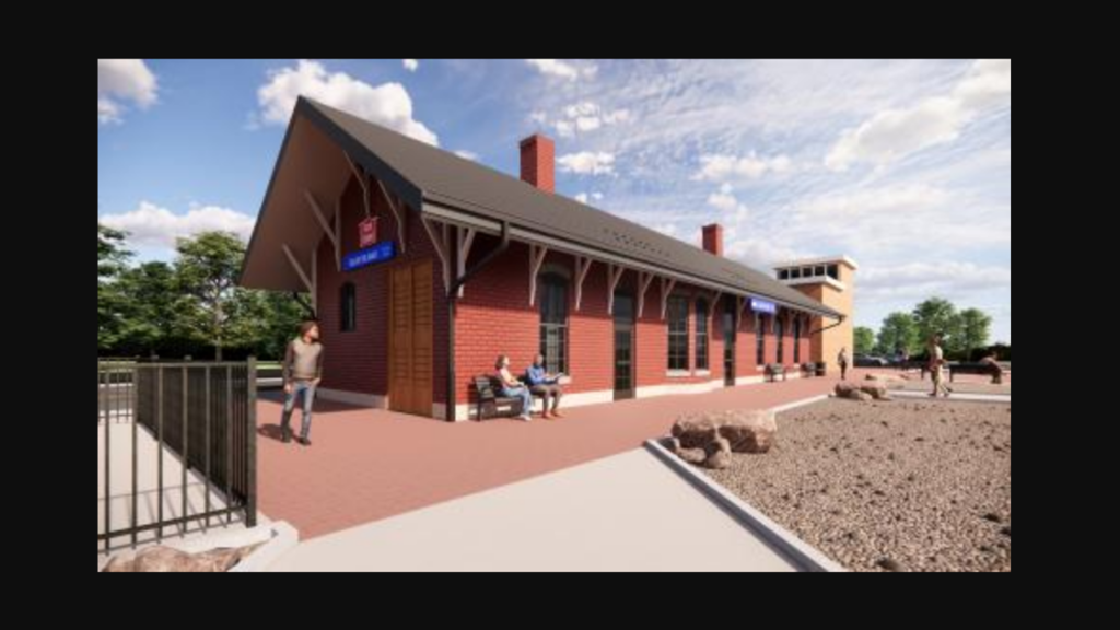 Rendering of Metra’s historic Blue Island/Vermont St. Station, whose rehabilitation is slated to be completed this fall. (Rendering Courtesy of Metra)