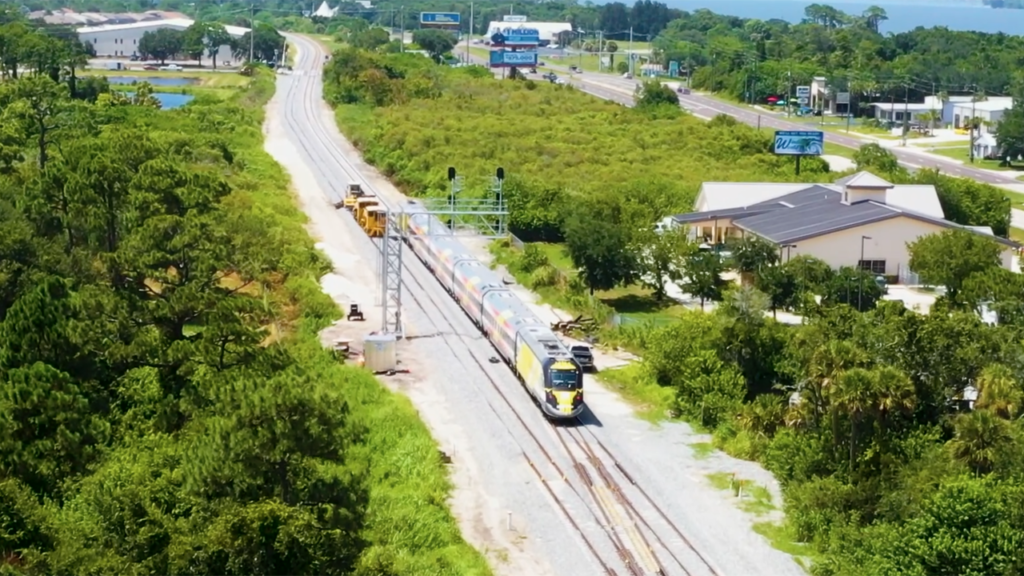 Pictured: Brightline trainset testing at 79 mph on the West Palm Beach-to-Cocoa segment of the Orlando Extension, slated to open in early 2023. (Screenshot taken from a video, courtesy of Brightline)