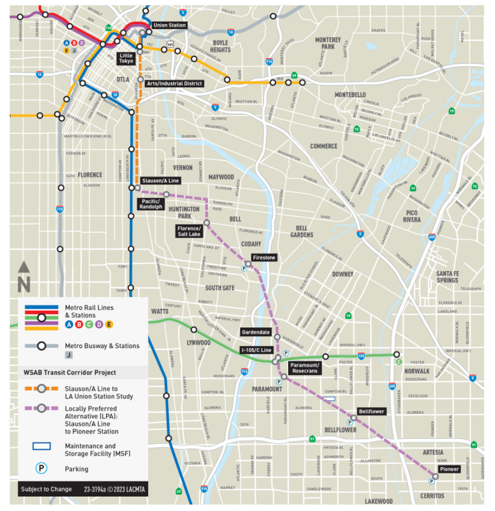 Why a new name? “While the existing project name carries historical significance––using the name of the rail corridor previously owned by Pacific Electric, which prior to the early 1960s, ran service from Downtown Los Angeles to the city of Santa Ana in Orange County––the new line won’t go as far as the city of Santa Ana. Rather, the line will terminate in Artesia. A new name will eliminate this confusion,” LACMTA explained.