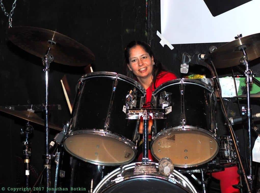 Kamala drumming with Kamala and The Karnivores in 2017. Credit: Jonathan Botkin.