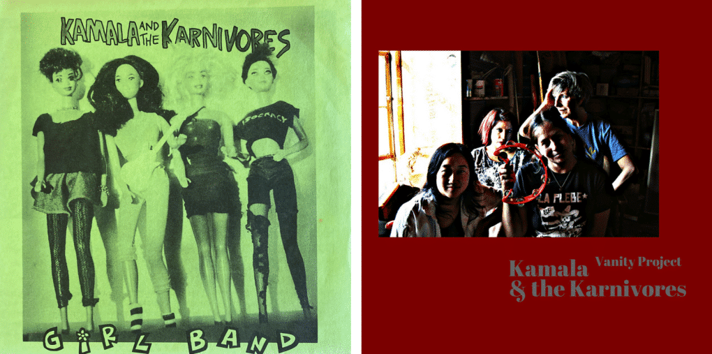 Left: Kamala and The Karnivores Girl Band EP, originally released on Lookout Records in 1989. Right: Kamala and The Karnivores second record, Vanity Project, released in 2018.