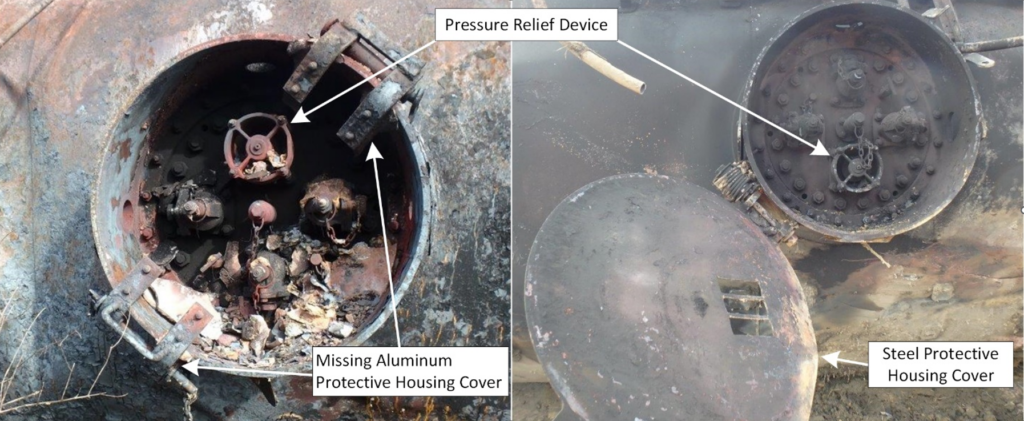 According to the Safety Advisory, PHMSA and the Federal Railway Administration (FRA) “may take additional action in the future if investigations reveal that the destruction of the aluminum manway covers and presence of melted aluminum inside the protective housing significantly contributed to improper functioning of the pressure relief devices.”