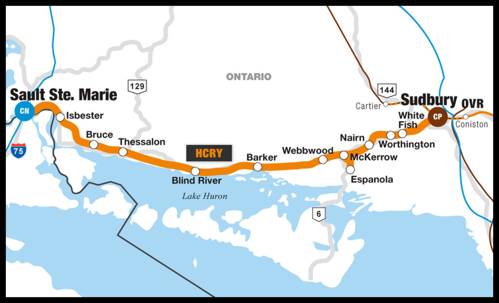 Genesee & Wyoming in 1997 acquired HCRY, whose top commodities include lumber and forest products, metals, minerals and stone, and pulp and paper. The short line interchanges with CN (at Sault Ste. Marie) and Canadian Pacific (at Sudbury).