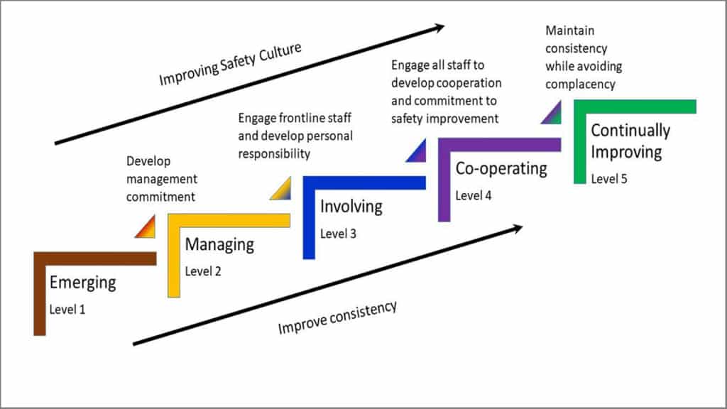 In its report, released Aug. 26 (download below), FRA said that, overall, based on the Fleming Safety Culture Maturity Model, “BNSF’s safety culture is generally moving from the involving level of safety culture maturity to the cooperating level. During the assessment, FRA found several examples of practices implemented by BNSF to keep its safety culture moving toward a more mature and robust safety culture, with a focus on continually improving. Underscoring this commitment was a consistent finding that BNSF leadership cite safety as a core value of the organization.”