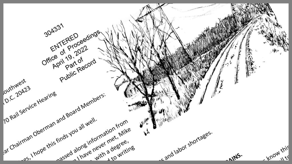 Editor’s Note: The Surface Transportation Board is conducting an in-person hearing April 26-27 (EP 770, Urgent Issues in Freight Rail Service) with the CEOs of the “Big Four” Class I railroads—BNSF, CSX, Norfolk Southern and Union Pacific—on service problems. Class I locomotive engineer Matthew DeLay, without identifying his employer, sent this letter to STB Chairman Marty Oberman on April 19 as commentary for the hearing. It was entered into the Public Record by the STB Office of Proceedings on April 19. It is reproduced here in its entirety, with only minor edits. The opinions expressed here are those of Mr. DeLay, not Railway Age. – William C. Vantuono