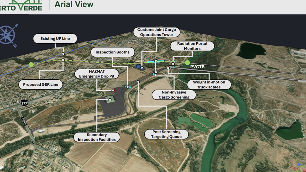 GER told the STB that the Puerto Verde Global Trade Bridge’s purpose “is to resolve the rail and CMV congestion, reduce cross border wait times, route rail traffic and CMV traffic around the urban centers of the City of Eagle Pass and Piedras Negras, thereby eliminating the at-grade crossings and the associated environmental and community burdens, and increase security.” Additionally, the new trade corridor “will directly link the industrial areas of Mexico with the United States providing economic opportunity in Maverick County and the State of Coahuila,” GER said.