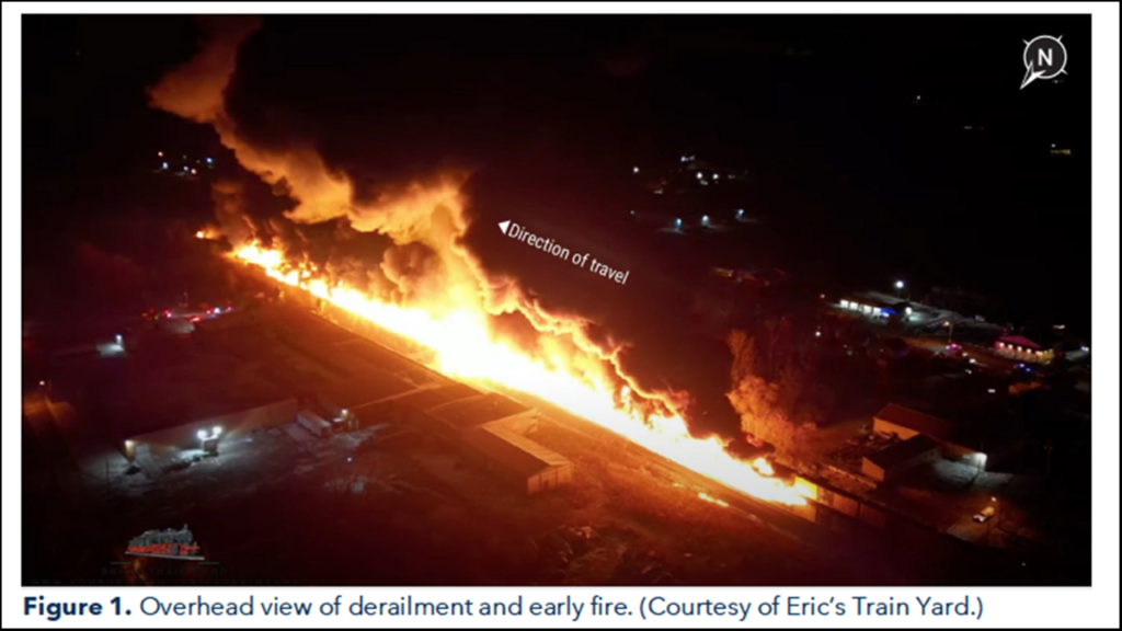 Approximately three weeks after its June 25 public meeting in East Palestine, Ohio, site of the Feb. 3, 2023 derailment of a Norfolk Southern freight train that resulted in a hazmat release and fires, the National Transportation Safety Board (NTSB) on July 16, 2024 published its final report, Railroad Investigation Report RIR-24-05, Norfolk Southern Railway Derailment and Hazardous Materials Release (download below).