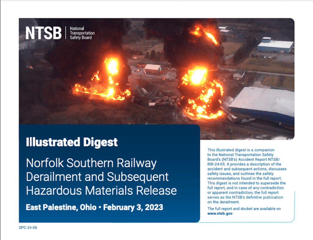 The National Transportation Safety Board (NTSB) on Sept. 24 released an illustrated digest of its investigation into the 2023 derailment of a Norfolk Southern (NS) freight train carrying hazardous materials in East Palestine, Ohio.