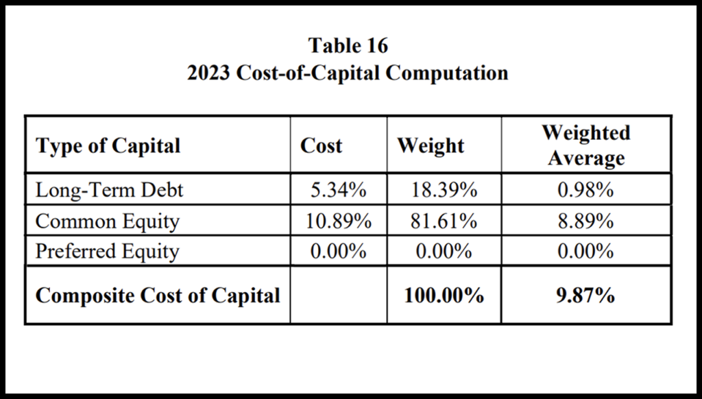 - The cost of common equity was 10.89% (compared with 11.99 in 2022, 12.03% in 2021, and 9.33% in 2020).