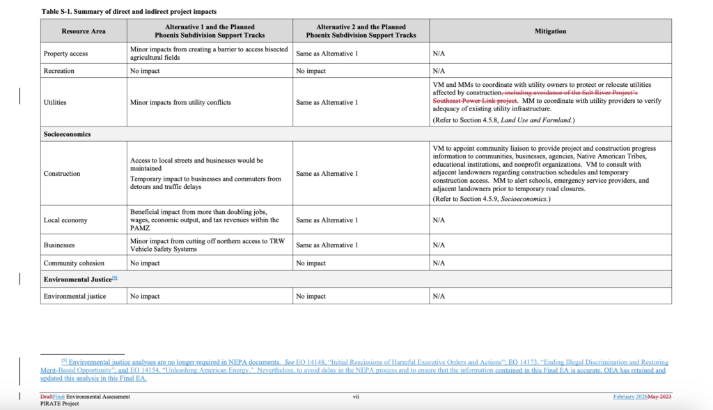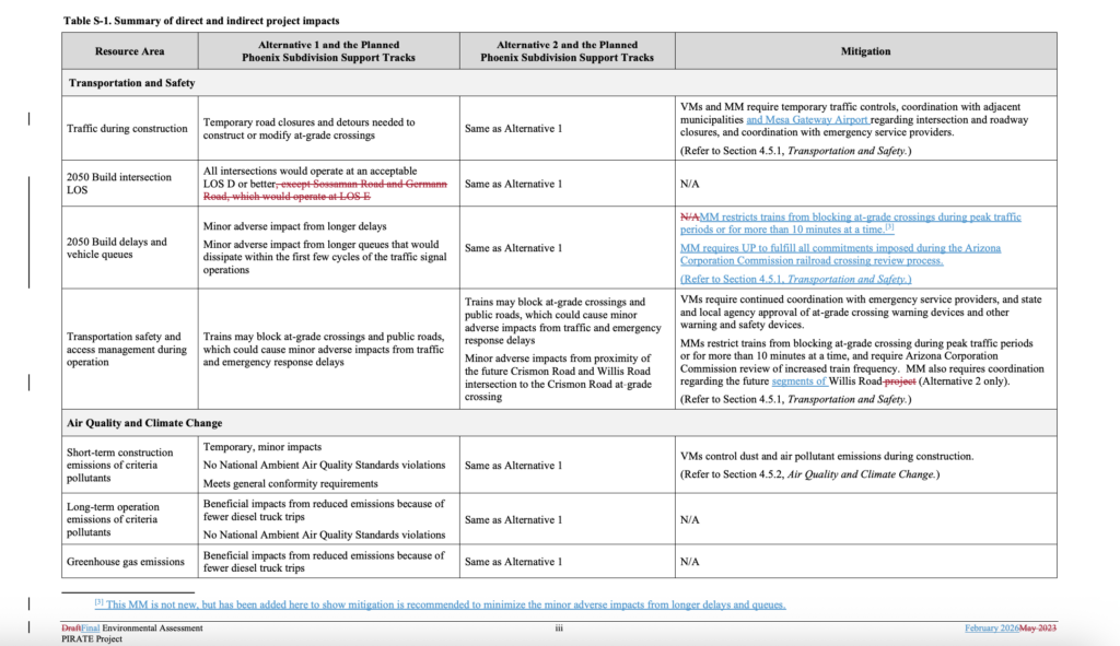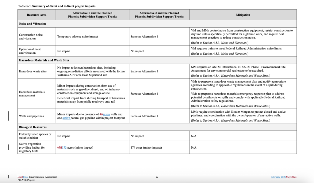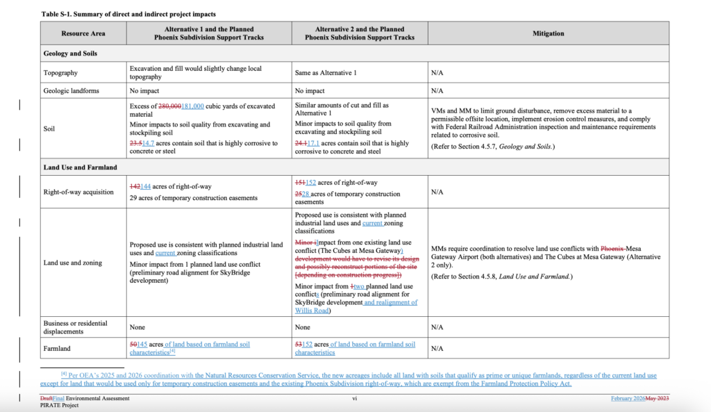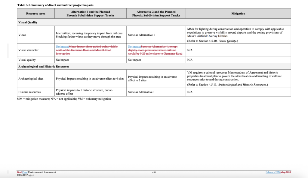 OEA in August 2023 delayed issuance of a Final EA after discovering that “there had been significant ground disturbance and damage to National Register of Historic Places-eligible archaeological resources within the proposed right-of-way,” according to the STB. “Following briefing on the issue, the Board was unable to reach a majority decision on whether a violation of NHPA had occurred, and the historic review process under NHPA resumed.” OEA on Feb. 27, 2026, issued a Final EA updating the environmental analysis and responding to the comments received on the Draft EA. “In the Final EA, based on that analysis, OEA determined that the conclusions in the Draft EA remain valid,” STB reported. “The Final EA also recommended conditions to the Board to avoid, minimize, or mitigate the project’s potential impacts on the environment and historic properties.”