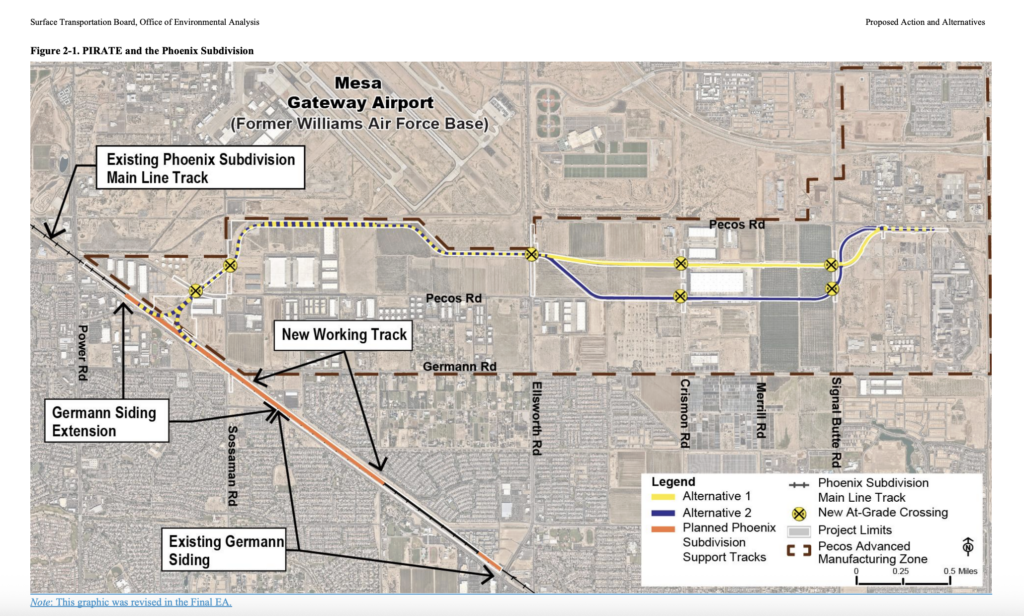 The Surface Transportation Board (STB) in a March 12 decision authorized Union Pacific (UP) to construct and operate approximately six miles of new rail line in Maricopa County, Ariz., subject to environmental and historic preservation conditions.