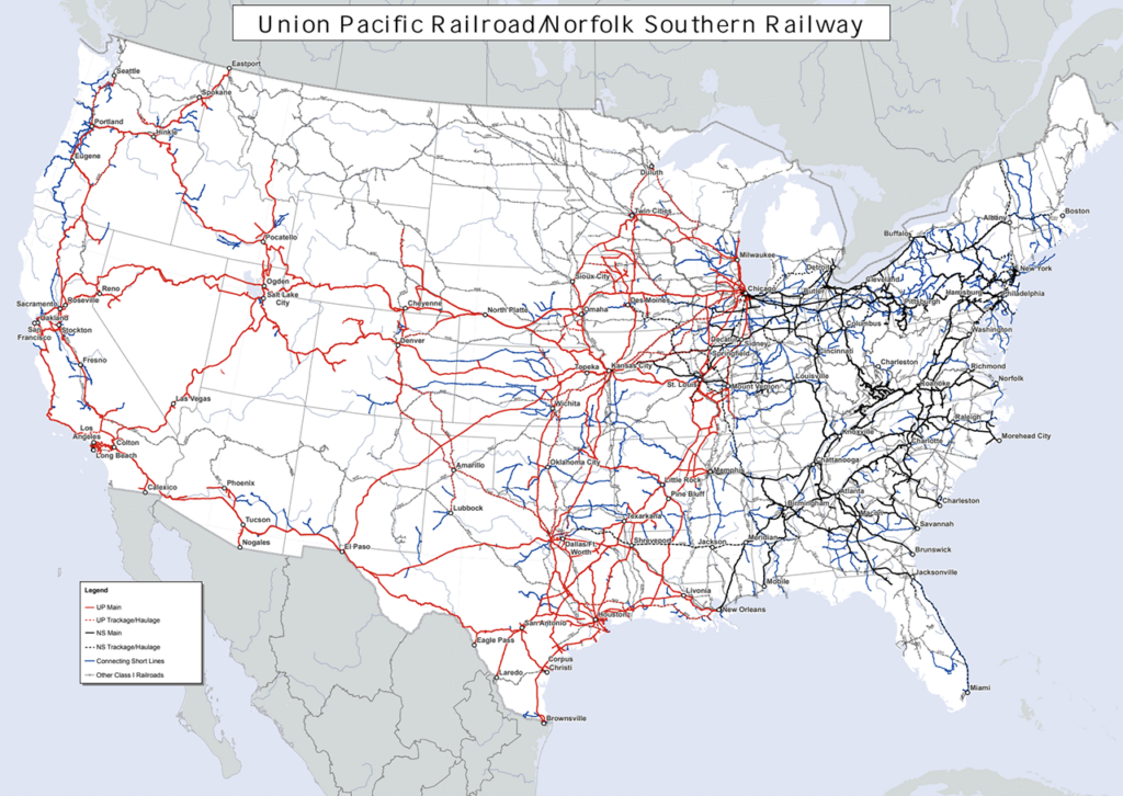 That unanimous bipartisan commitment to tell-it-all was extended by a March 18 STB decision (Docket F.D. 36873; download below) directed at Union Pacific (UP) and Norfolk Southern (NS), who are expected by April 30 to file a merger application to create the first U.S. Atlantic-to-Pacific railroad. The STB is requiring of UP and NS the same full disclosure—whole truths—as the Department of Justice (DOJ), under provisions of the Hart-Scott-Rodino Act, requires of non-railroad merger applicants.