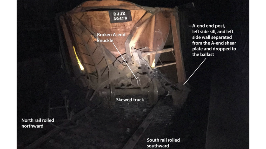 The AAR issued maintenance advisories MA-0188 and MA-0198, Early Warning EW-5344 and Equipment Instruction El-0017 to the rail industry “requiring the inspection of specified bathtub gondola cars,” according to the TSB. “Equipment Instruction El‑0017, which was issued subsequent to the maintenance advisories and early warning, requires Berwick Forge bathtub gondola cars of the same vintage as the occurrence car to be inspected every two years. Cars identified in the equipment instruction are automatically prohibited from interchange under the AAR Interchange Rules unless they have been inspected within the two-year timeframe and determined to be free from specified defects. The process will repeat every two years for each car on the list.”