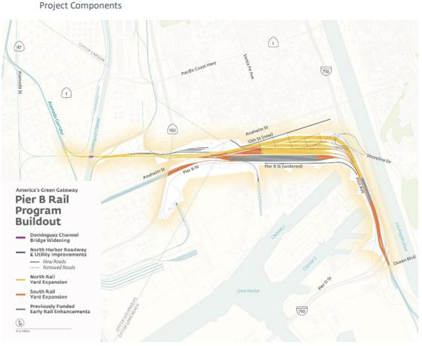 - America’s Green Gateway: Pier B Rail Program Buildout (Long Beach, Calif.): The city of Long Beach will receive $283.4 million for the Pier B On-Dock Rail Support Facility Program to complete the North Rail Yard expansion and the South Rail Yard Expansion. (The Port of Long Beach announced this award in December). The North Rail Yard Expansion will construct two new mainline tracks, five new 10,000-foot receiving and departure tracks extending from west of the Dominguez Channel to the Pico Avenue Rail Corridor, and 26 new storage tracks north of the existing Pier B Yard. It also includes active at-grade warning devices and railroad pre-emption with a new traffic signal at Pier B Street. The South Rail Yard Expansion will add seven new 3,000-foot storage tracks, lengthen and rehabilitate seven existing 3,000-foot storage tracks, construct two new tracks in the Pico Avenue Rail Corridor, reconfigure tracks near Pier D Street, and construct a new compressed air facility. According to USDOT, the project work “will significantly enhance container-on-rail service to and from the ports of Long Beach and Los Angeles, facilitating 20% of container throughput at the ports that moves exclusively by rail.” Additionally, it is slated to improve the connections between the ports and the BNSF and Union Pacific (UP) rail networks. USDOT noted that the project applies a Port-Wide Project Labor Agreement that the Port of Long Beach executed with the Los Angeles/Orange Counties Building and Construction Trades Council and the Signatory Craft Councils and Local Unions.