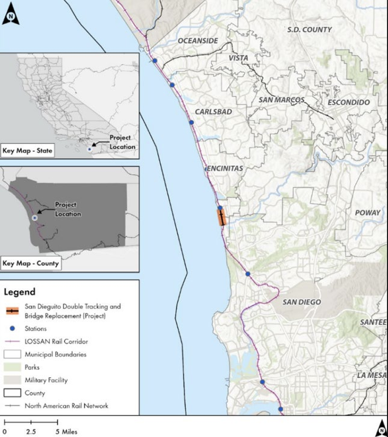- San Dieguito Bridge Replacement Project (San Diego, Calif.): North County Transit District will receive $53.9 million to replace the San Dieguito River Railway Bridge, a 107-year-old single-track wooden trestle that currently sits below the 100-year FEMA flood elevation. The replacement bridge will be double-tracked and the height of the tracks will be raised by eight feet to account for increased sea level changes, according to USDOT. The bridge structure will have new pedestrian and bicyclist infrastructure, which the Department said would improve safety in an area where there is frequent trespassing across the bridge to get to the coast and nearby trails.