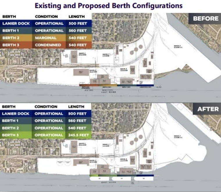 - East River Terminal Berth Replacement Project (Garden City, Ga.): The Georgia Ports Authority will receive $15.1 million to replace a port berth and two vessel berths at the Port of Brunswick’s East River Terminal. The project will demolish and replace the Berth #2 main dock and demolish and rebuild Berth #3 at half its existing length to facilitate the long-term use of the terminal by vessels carrying U.S. exports, according to USDOT. The project will also construct a continuous marine fender system for Berths #2 and #3, install electrical and water utilities, and dredge the Berth #3 vessel berthing area. “The project will use public investment to sustain a growing export business of a renewable energy source (wood pellets), partnering with private investment to provide an efficient trade lane,” the Department reported. “Without the project, U.S. exports of pellets will become marginally less competitive, and additional costs will be imposed as these exports will have to use alternative ports generating additional overland truck movements at higher cost. This project will also reduce greenhouse gas emissions by supporting a modal shift from truck to rail for the transportation of commodities to the Port of Brunswick.”