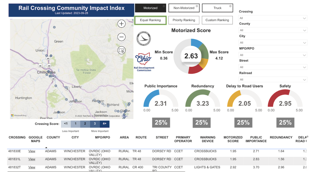 “The Rail Crossing Community Impact Index will be a significant asset for the Rail Commission, its partners, and the public,” said Ohio Rail Development Commission Executive Director Matthew Dietrich, in a press release. “By providing a publicly available tool to measure the relative impact of blocked at-grade crossings, all users will benefit from the information provided for a specific crossing or group of crossings, and how they measure up in relation to the statewide average.”