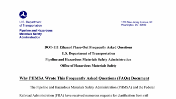 The Pipeline and Hazardous Materials Safety Administration (PHMSA) and the Federal Railroad Administration (FRA) have released a “Frequently Asked Questions” document on implementing the upcoming phase-out of DOT-111 specification tank…