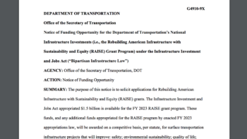 The U.S. Department of Transportation (USDOT) has released a Notice of Funding Opportunity (NOFO) for the FY 2023 RAISE program, providing $1.5 billion in discretionary grant funding for freight and…
